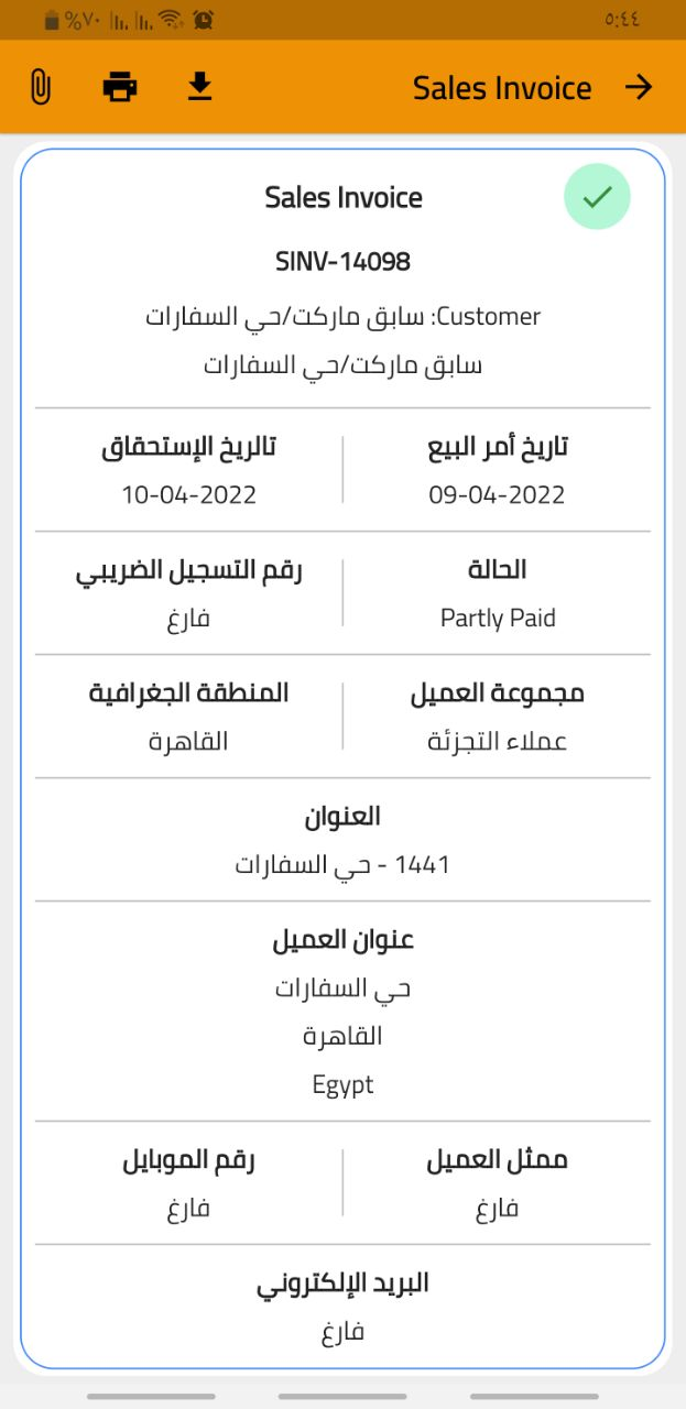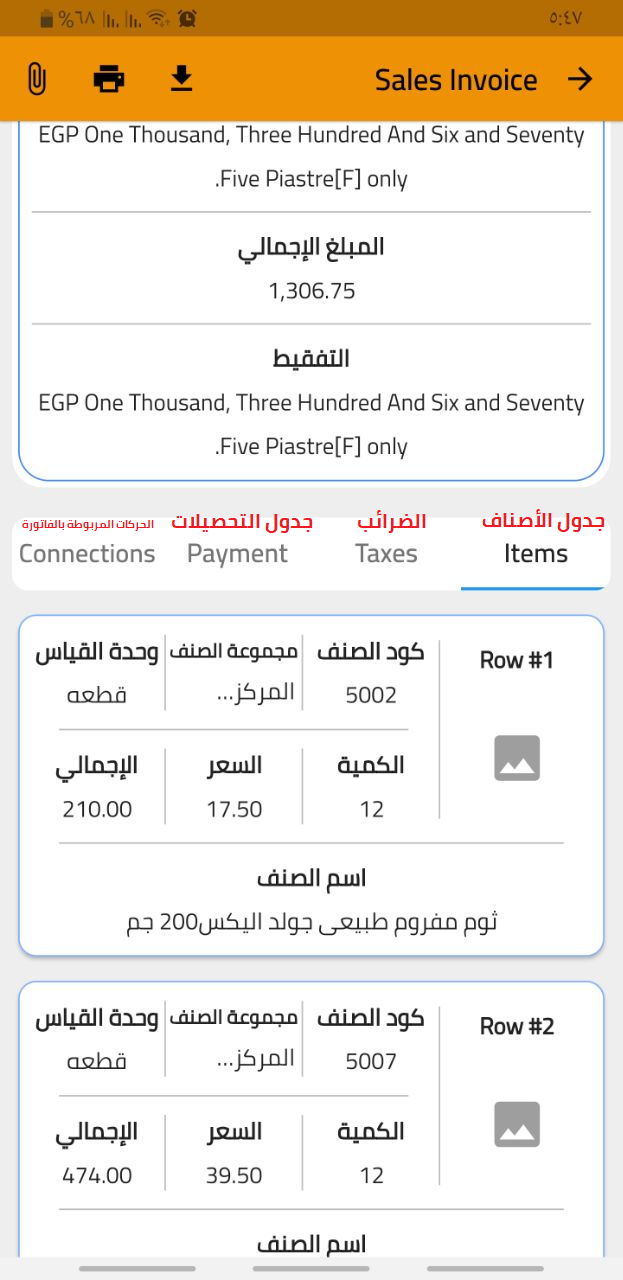 عرض بيانات الفاتورة